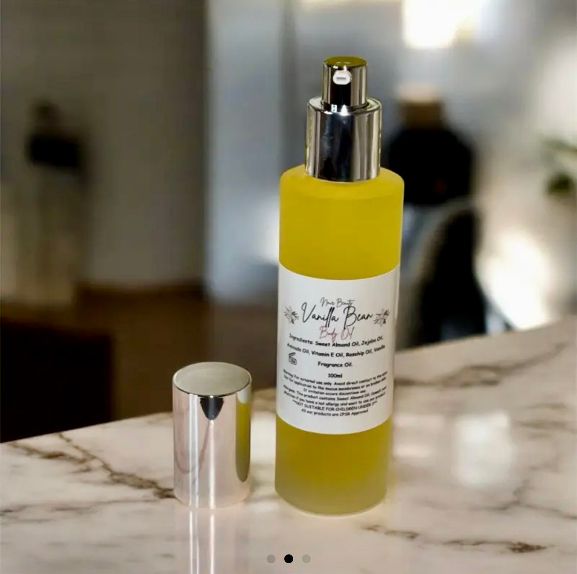 - Materials: Jojoba oil, almond oil, avocado oil, vitamin e oil, rosehip oil, and vanilla essential oil